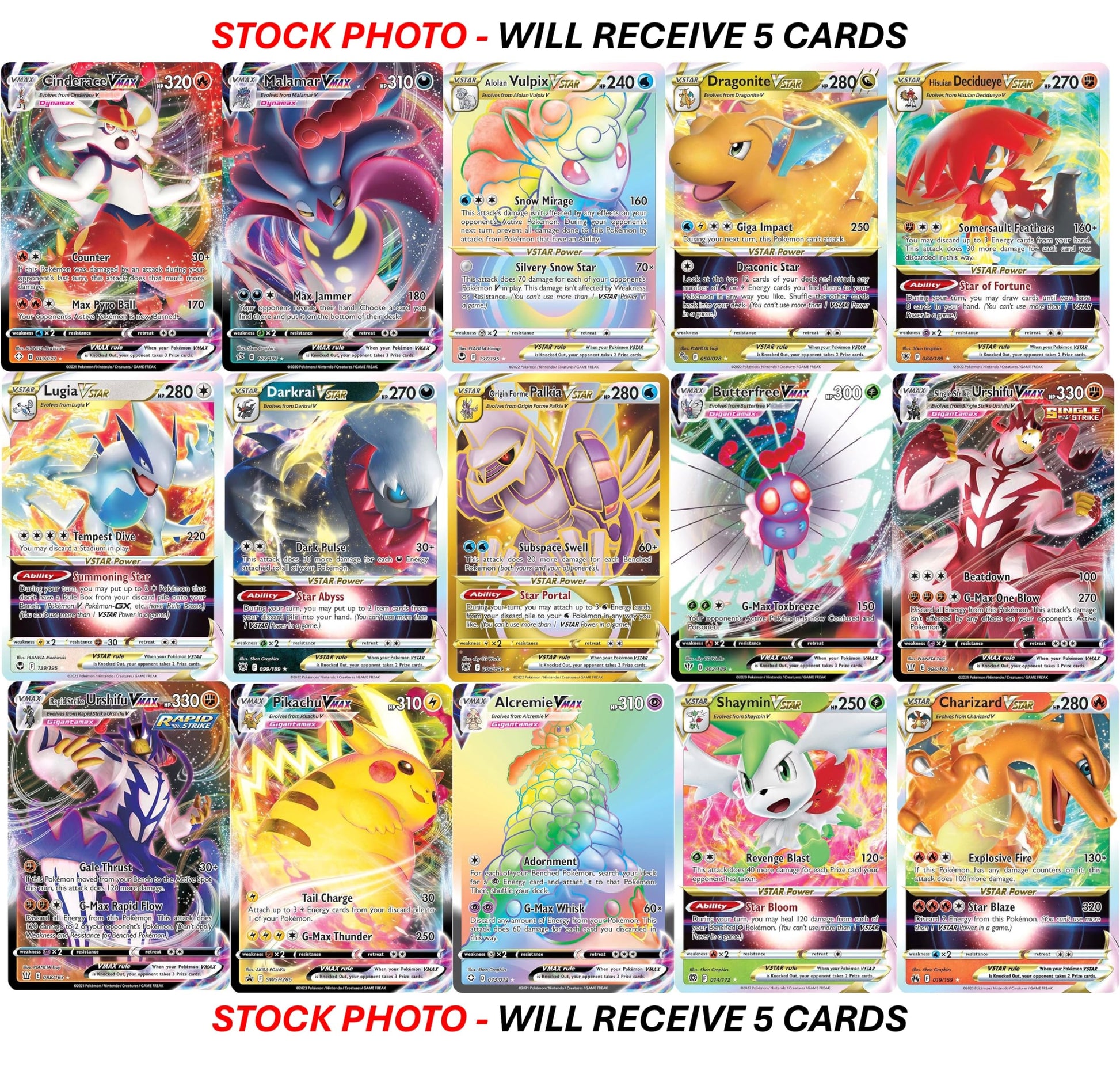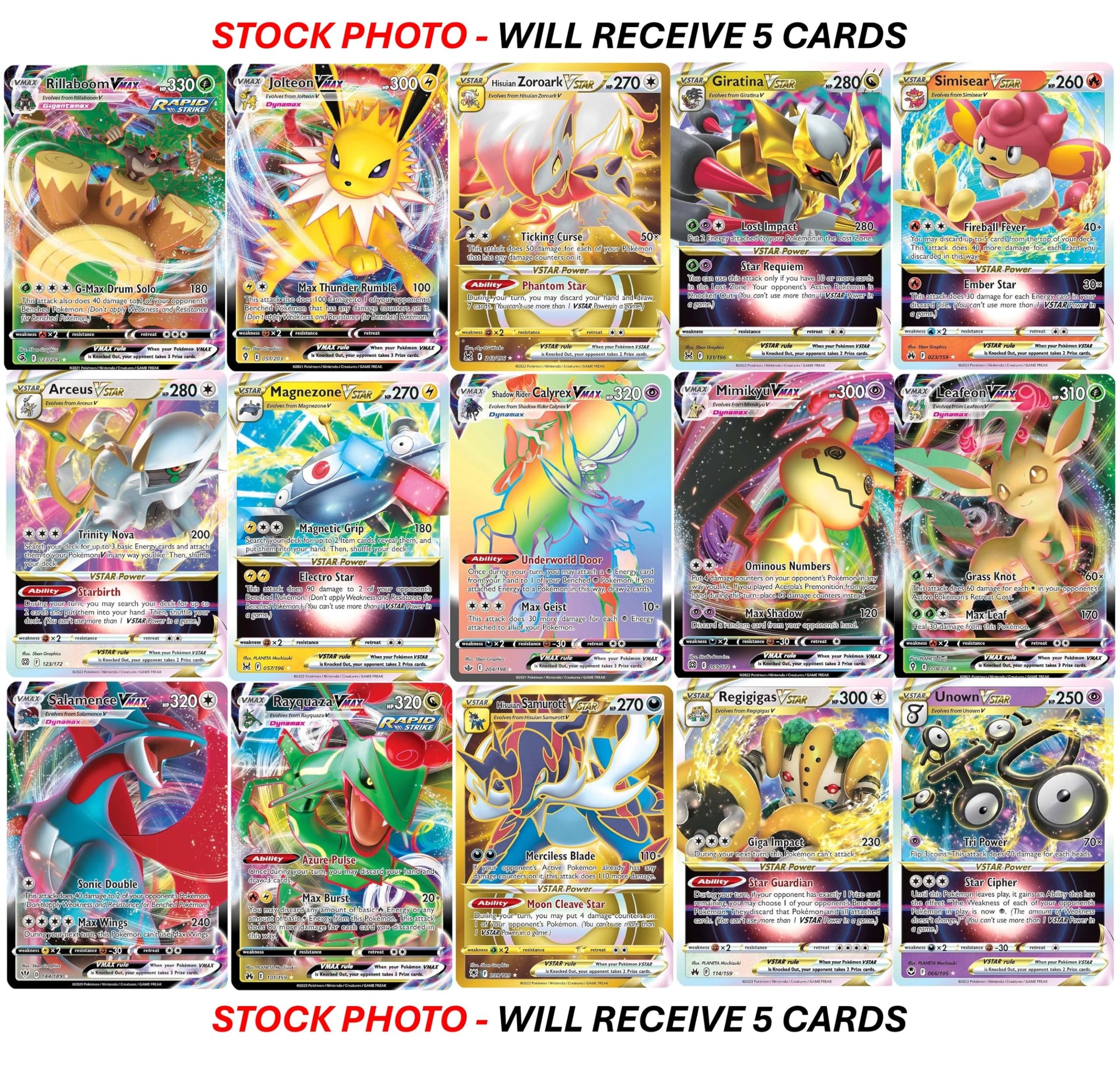 - 5 Assorted VSTAR/VMAX Pokemon cards